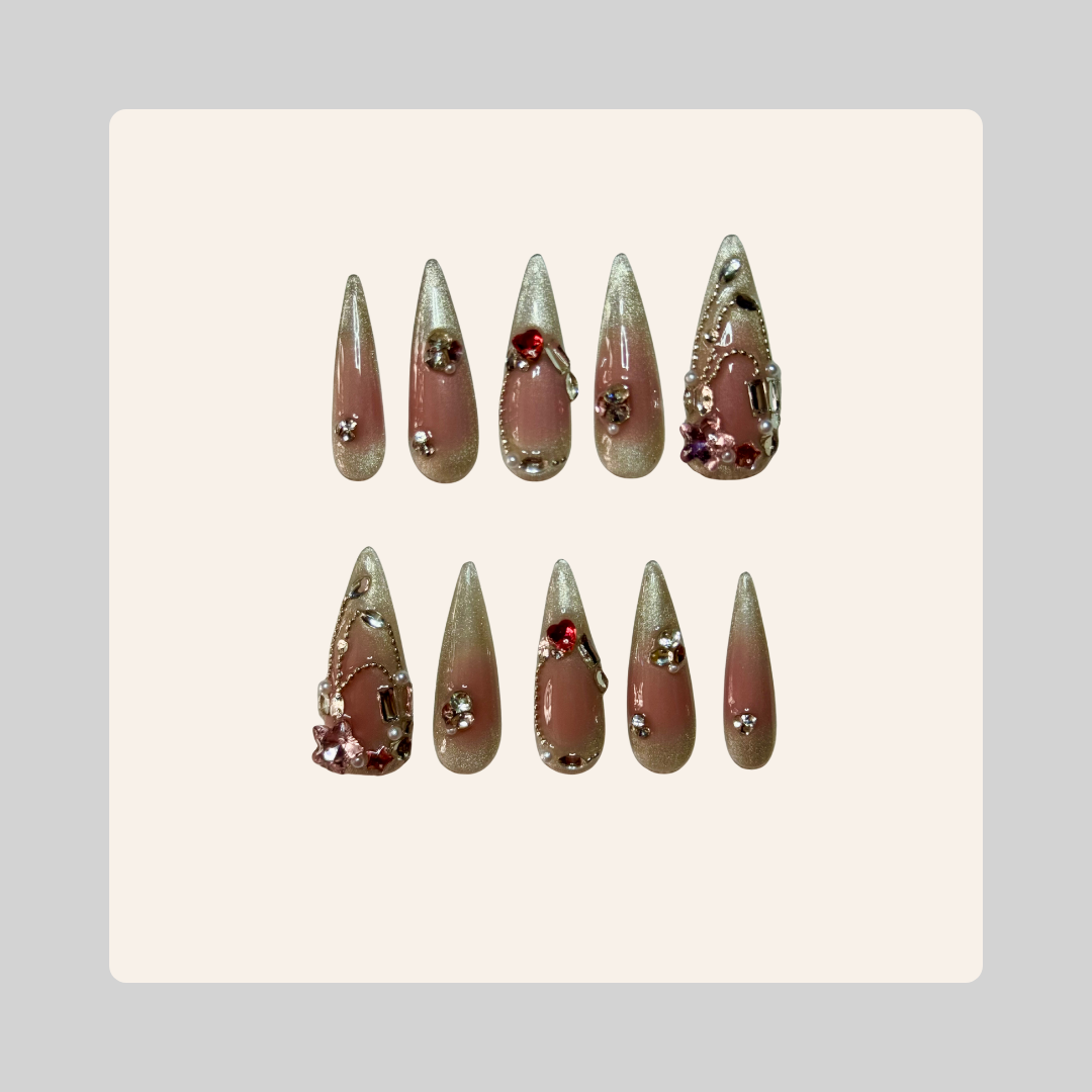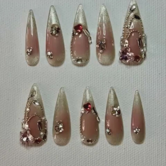 Design: Silver Nude-Pink Catseye / 3D Floral and Chain Embellished